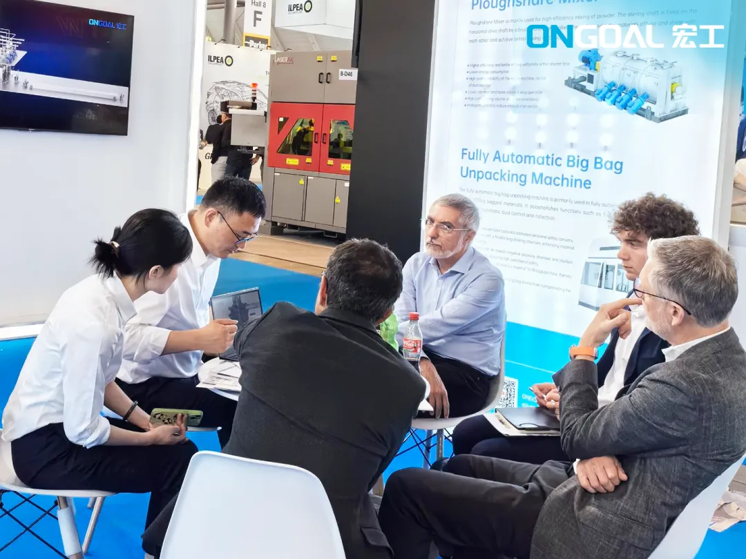 At the exhibition, ONGOAL TECH highlighted its self-developed new product—the fully automatic jumbo bag unpacking machine. This market-first innovation achieves full automation in jumbo bag unpacking, enabling truly unmanned production. The machine operates without manual intervention, revolutionizing traditional unpacking methods and unlocking production potential.