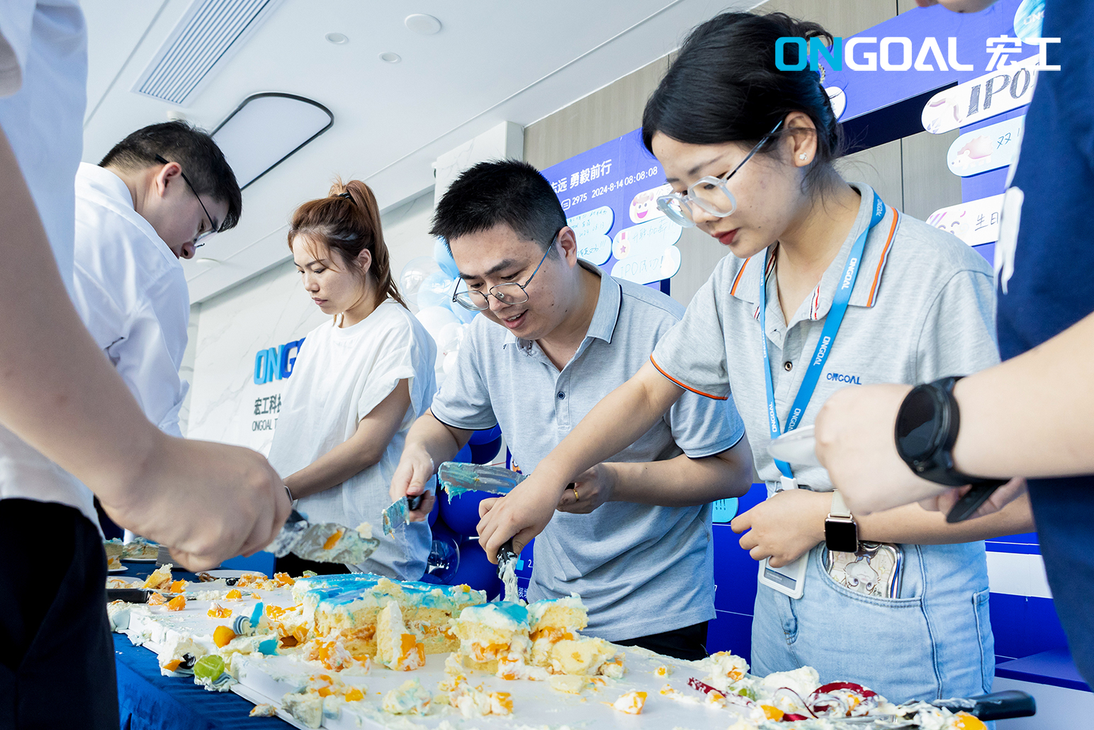 在切蛋糕儀式上,全體高管人員手執(zhí)禮刀、禮炮,在大家的掌聲中分享這一充滿認(rèn)同與溫暖的時(shí)刻。