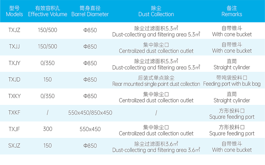 選配設(shè)備:除塵裝置/中央除塵接口、可移動(dòng)腳輪、流化組件、差壓表、磁格柵
