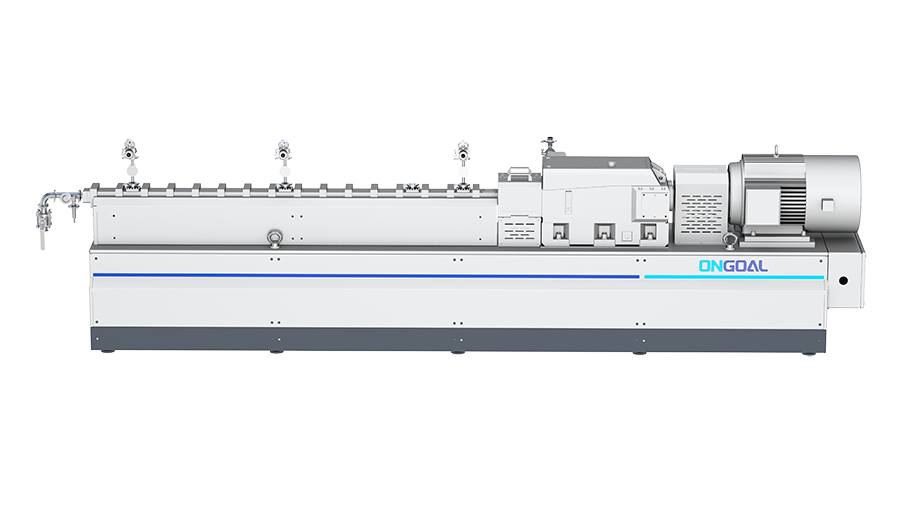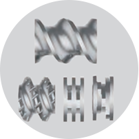 采用同向捏合型雙螺桿,物料受到輥壓及反向速度梯度作用,形成8字型通道輸送,螺桿浮起, 避免螺桿與機(jī)筒摩擦,使物料均勻混合分散;共軛型螺桿,具備良好的自潔性。