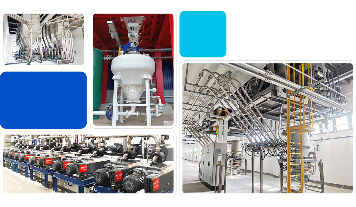 根據(jù)客戶的物料特性、場(chǎng)地條件、工藝要求,宏工提供各種合理的氣力輸送方案,使物料投料、儲(chǔ)存、配料等生產(chǎn)工藝均可通過氣力輸送管道整合連接起來,從而實(shí)現(xiàn)密閉無塵式生產(chǎn)。