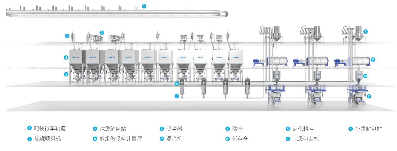 常用于日用化工品、膠粘劑、有機(jī)硅等精細(xì)化工品的生產(chǎn),用于處理粉粒料化工原料及溶劑的自動(dòng)化輸送配料,系統(tǒng)由解包系統(tǒng)、儲(chǔ)存系 統(tǒng)、輸送系統(tǒng)、計(jì)量系統(tǒng)和控制系統(tǒng)組成。