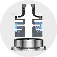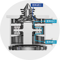 分散腔中的“特定分散盤”設計有8層以上的剪切環(huán),漿料流經分散區(qū)時呈必然式浸潤分散狀態(tài),大幅度提高分散效率。